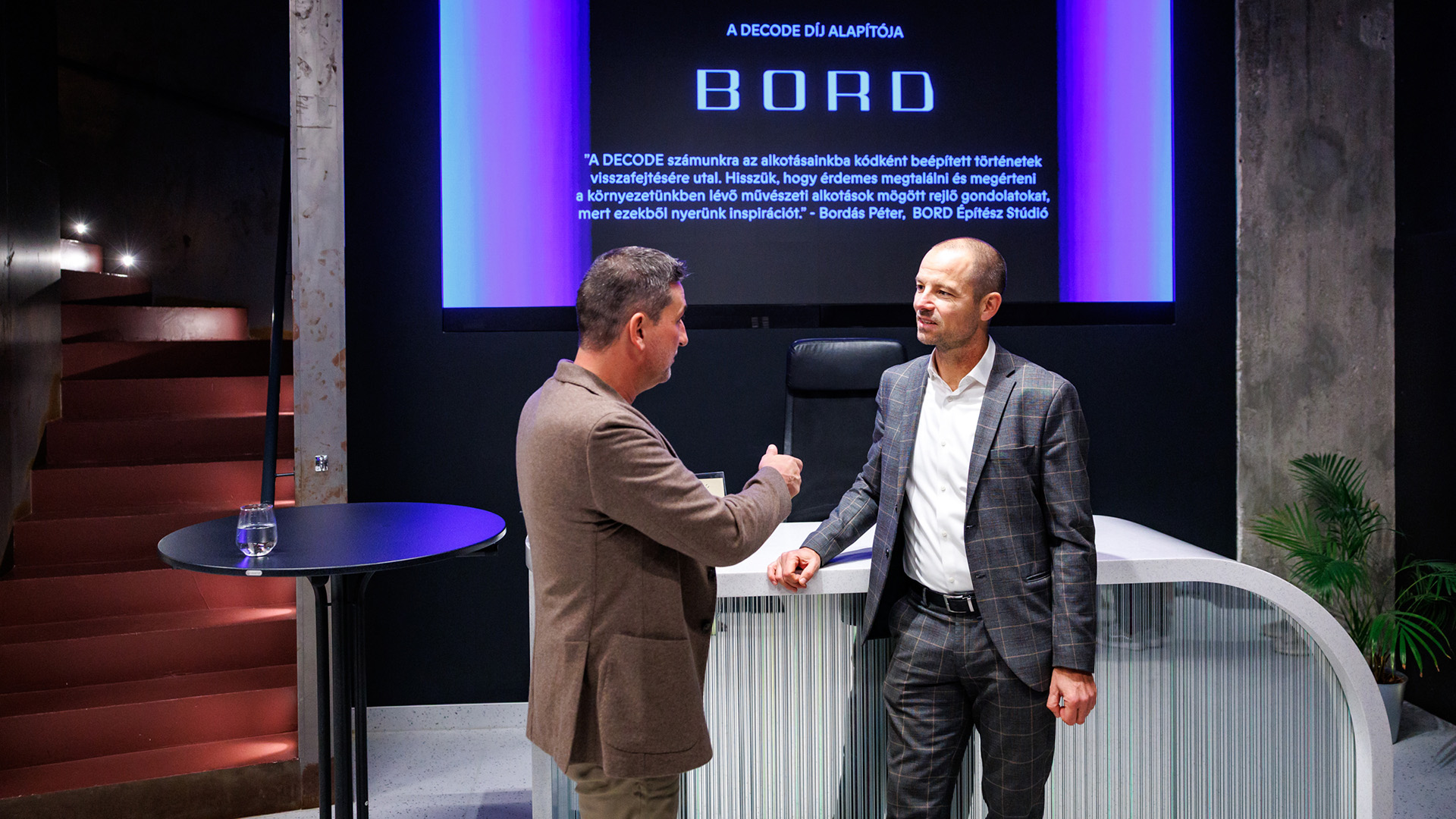 Prior to the DECODE Awards ceremony, the DECODE Inspiration event set a vibrant, creative tone, with presentations by Valentina Torrente representing Mario Cucinella Architects on the architectural side, and visual artist Ilona Németh on the art side. The ceremony itself was hosted by Zubreczki Dávid, architectural storyteller. The Winners received a hand-cut glass trophy and HUF 1,000,000; the Promising Project Award was HUF 150,000; and the Spotlight Award, supporting a professional trip, was a HUF 500,000 flight voucher. The winning and shortlisted projects were showcased on large LED screens at the Apollo Gallery.